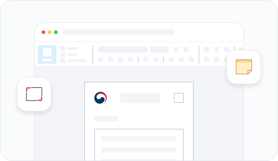 Rich table editing, memo insertion, and shortcut support optimized for administrative/approval documents